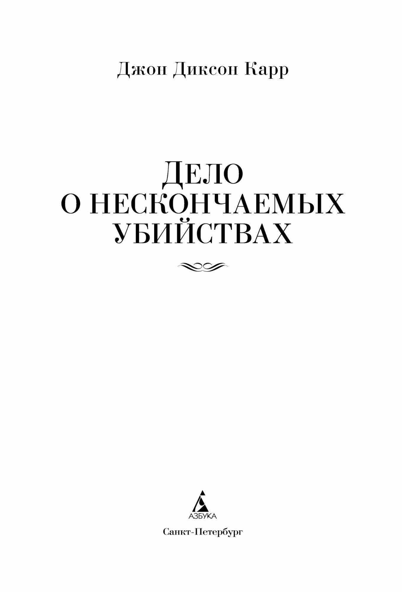 Дело о нескончаемых убийствах : роман / Джон Диксон Карр ; пер. с англ. А. Поликарповой. — СПб. : Азбука, Издательство АЗБУКА, 2025. — (Классика детектива. Большие книги).