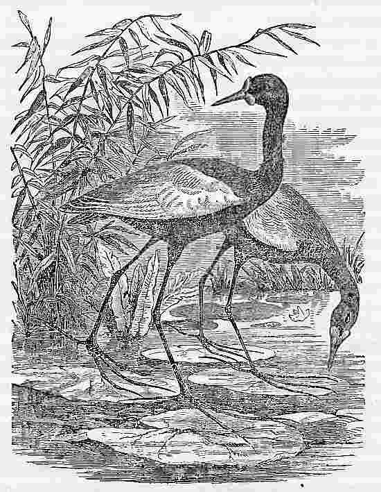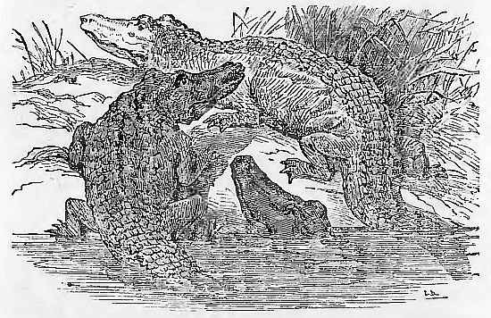At all events, they were now scarcely a quarter of a mile from the forest, which they knew stretched along the horizon as far as they could have seen had it been daylight. They could only just distinguish a dark belt or line rising above the surface of the water before them; but that this extended right and left to a far distance could be told from the sounds that came from it. There was the hum of tree-crickets and cicadas, the gluck of toads and frogs, the screams of aquatic birds, the hooting of owls, and the strange plaintive calls of the goat-suckers, of which several species inhabit the Gapo forests; the whip-poor-will and the “willy-come-go” all the night long giving utterance to their monotonous melody. Harsher still were the cries proceeding from the throats of howling monkeys, with now and then the melancholy moaning of the aï, as it moved slowly through the branches of the embaüba (cecropia-tree). All these sounds, and a score of other kinds,—some produced by insects and reptiles of unknown species,—were blended in that great choir of nature which fills the tropical forest with its midnight music.