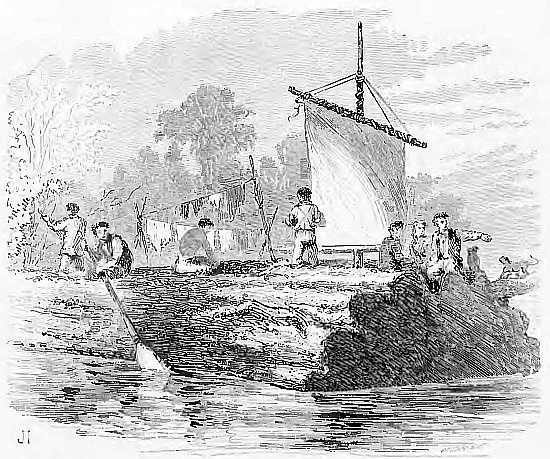 Having determined on this, they drew their craft into the darkest corner, and, making it fast to a tree, prepared to pass the time in the pleasantest possible manner.