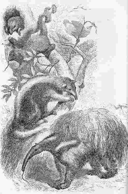 The other creatures of the animated kingdom that found lodgment upon the craft were of various shapes, sizes, and species. There were quadrupeds, quadrumana, and birds,—beasts of the field, monkeys of the forest, and birds of the air,—clustering upon the cabin top, squatted in the hold, perched upon the gangway, the toldo, the yard, and the mast,—forming an epitomised menagerie, such as may be seen on every kind of craft that navigates the mighty Amazon.