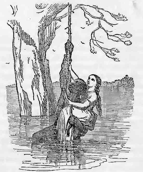 As their eyes became accustomed to the glare, the swimmers could make out that the fires were upon a sort of scaffold raised several feet above the water, and supported by the trunks of the trees. Other similar scaffolds could be seen, on which no fires had been kindled,—from the fact, no doubt, that their occupants were not yet astir.