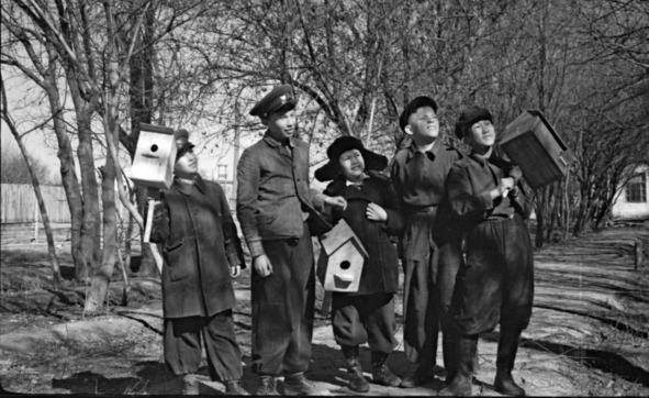 В День птиц учащиеся школы шли в парк и прибивали там на деревьях скворечники и кормушки для птиц; 50—60 годы