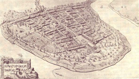 Но стране нужно было не только топливо, а в первую очередь люди. Наши крепкие и здоровые люди, умевшие не только воевать, но и строить. Строить добротно и хорошо. Строить на века. Чтобы достойно жить и трудиться на благо себе и последующим поколениям. Поэтому строительство заводского рабочего городка — будущего Жилгородка — велось на небольшом полуострове (изгиб реки Урал) в 2-х километрах северо-западнее строящегося завода.