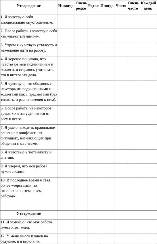 — самодиагностика по методике MBI (Маслач);