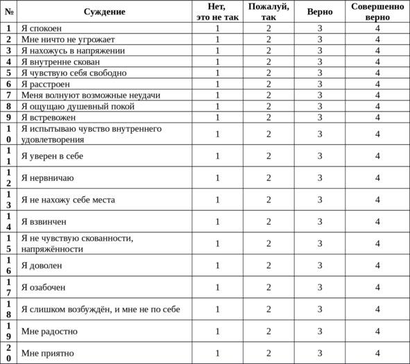 — шкала тревожности Спилбергера;