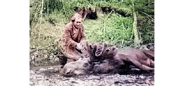 Так вот, подойдя к лежавшей на земле туше сохатого, я взял спаниеля и бросил на тушу — посмотреть, как тот среагирует на звериный дух. А пес приземлился на тушу, уселся, как ни в чем не бывало, и глядел на всех удивленно большими круглыми наивными глазами. Мы пошашлычили, разделали тушу и перенесли мясо в лагерь.