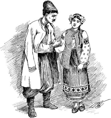 — О, ты мне не надоел, — молвила она, усмехнувшись. — Я тебя люблю, чернобровый козак! За то люблю, что у тебя карие очи, и как поглядишь ты ими — у меня как будто на душе усмехается: и весело и хорошо ей; что приветливо моргаешь ты черным усом своим; что ты идешь по улице, поешь и играешь на бандуре, и любо слушать тебя.