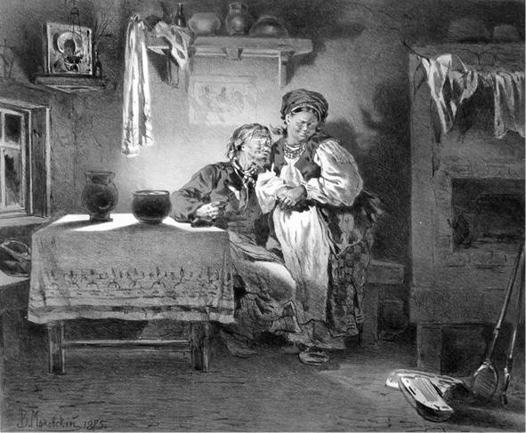 — Знаешь ли, что я думаю? — прервала девушка, задумчиво уставив в него свои очи. — Мне всё что-то будто на ухо шепчет, что вперед нам не видаться так часто. Недобрые у вас люди: девушки все глядят так завистливо, а парубки... Я примечаю даже, что мать моя с недавней поры стала суровее приглядывать за мною. Признаюсь, мне веселее у чужих было.