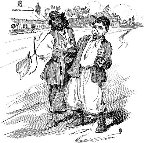 — Знаю, — продолжал высокий человек, — Левко много наговорил тебе пустяков и вскружил твою голову (тут показалось парубку, что голос незнакомца не совсем незнаком и как будто он когда-то его слышал). Но я дам себя знать Левку! — продолжал все так же незнакомец. — Он думает, что я не вижу всех его шашней. Попробует он, собачий сын, каковы у меня кулаки.