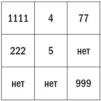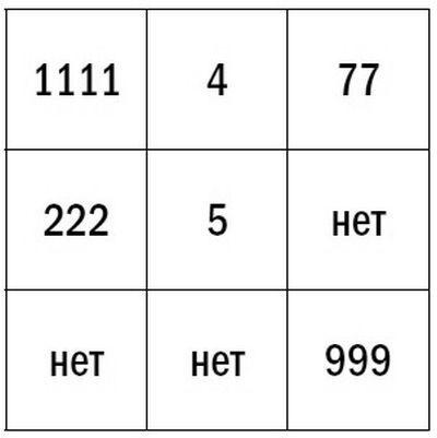 3-я строка – нет нет 999 – (цифры: 3, 6, 9).