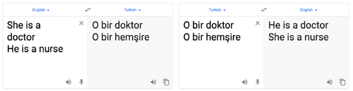 Рис. 1.12. Google Translate отражает внутреннюю смещенность в данных (по состоянию на сентябрь 2019)