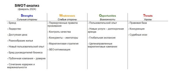 Ниже приведен подробный SWOT-анализ Airbnb: