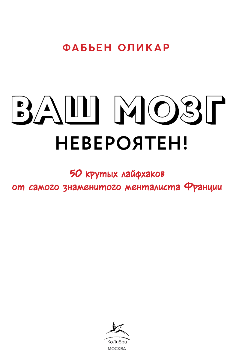 Ваш мозг невероятен! 50 крутых лайфхаков от самого знаменитого менталиста Франции / Фабьен Оликар ; пер. с франц. Е. Иванкевич. — М. : КоЛибри, Азбука-Аттикус, 2020. ; ил.