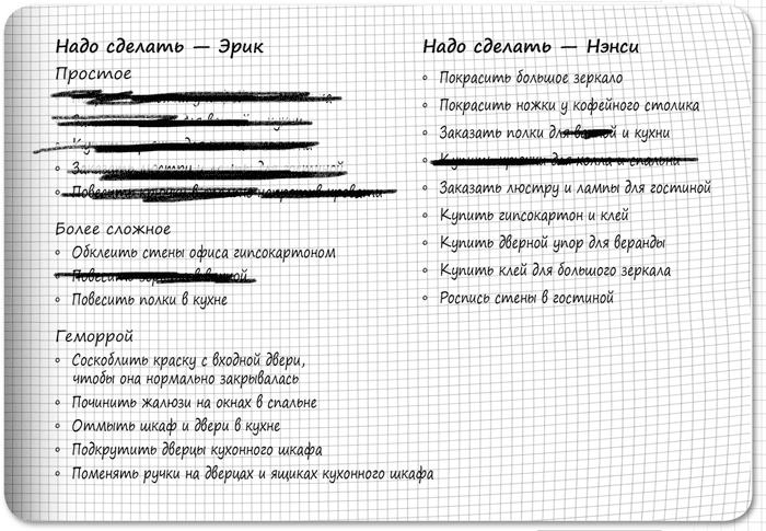 На двери в кухню они повесили два списка дел, по списку на каждого, и часто проверяли по ним друг друга — чтобы никто не смухлевал.