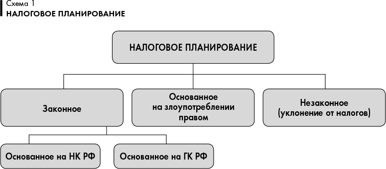 Многие авторы включают такой признак, как «законность», в определение понятия налогового планирования1 либо рассматривают соблюдение законодательства в качестве обязательного условия осуществления подобной деятельности2. Это узкий подход к пониманию налогового планирования. Законное налоговое планирование также называют оптимизацией налогообложения.