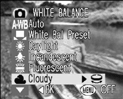 Рис. 1.3. Выбор предустановленного баланса белого в меню камеры