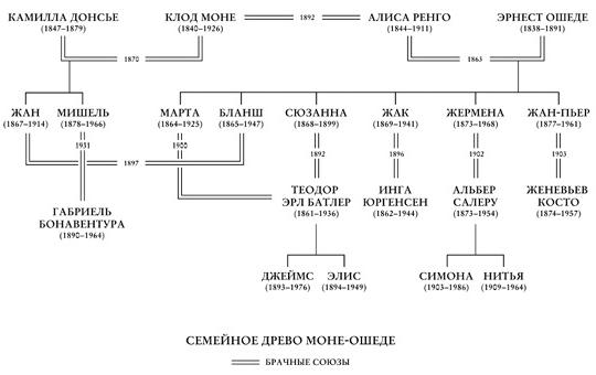 Но мало того что живопись Моне была «непонятной» — его появление в Живерни сопровождалось также атмосферой скандала. Сразу после кончины его жены Камиллы в 1879 году — а может, и еще раньше — у него начался роман с замужней дамой Алисой Ошеде. Она была супругой обанкротившегося предпринимателя Эрнеста Ошеде, с которым они официально проживали раздельно. К разорительным вложениям Ошеде относились и шестнадцать холстов Моне, в том числе «Впечатление. Восходящее солнце» — вещь, которой, если верить популярному, но все же ничем не подтвержденному мифу, обязаны появлением соответствующего термина импрессионисты24. Ошеде приобрел эту картину в 1874 году за 800 франков, но четыре года спустя продал с большим убытком — за 210 франков25. Моне переехал в «Прессуар» вместе с Алисой, двумя своими сыновьями и ее детьми: четырьмя девочками и двумя мальчиками. В Живерни большое семейство сразу обратило на себя внимание: как вспоминает один из представителей клана, одевались «мы броско, носили яркие платья, шляпы. 〈...〉 Для деревенских жителей мы были чужаками, и глядели они на нас с недоверием»26.