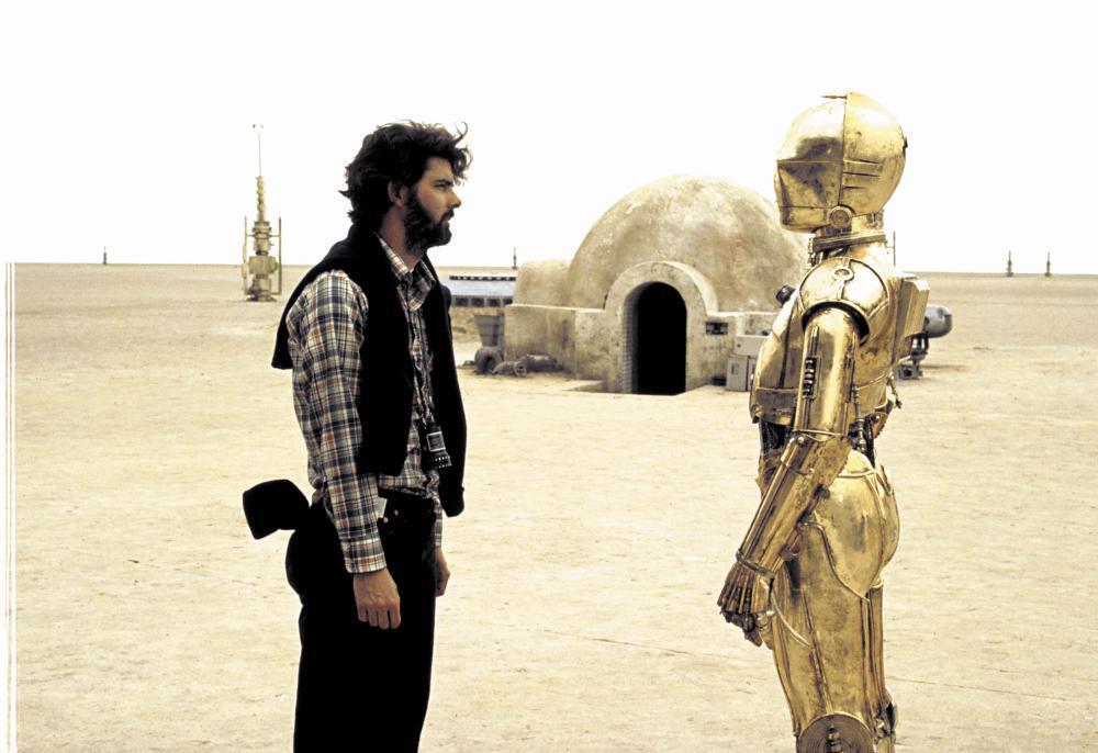 Джордж Лукас и Энтони Дэниелс на съемках фильма «Звездные войны. Эпизод 4: Новая надежда», 1977 г.