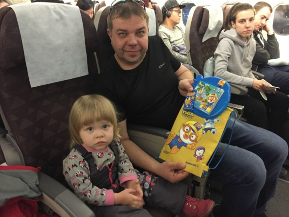 а у нас впереди 10 часов полета, почти без сна и с дочерью на руках…