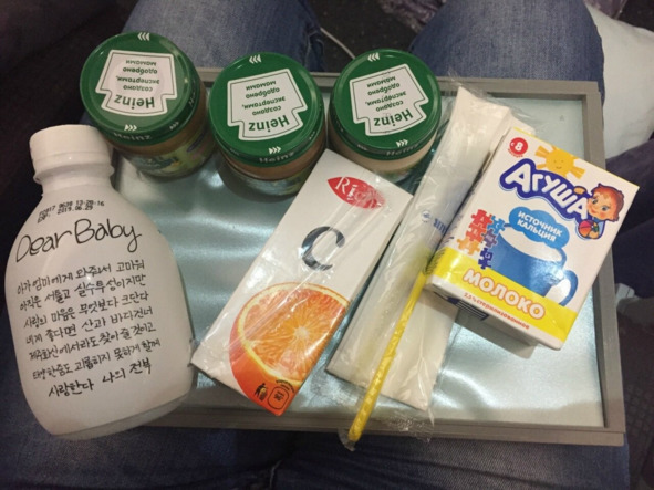 Дочке сразу принесли детский набор, в котором есно фигурировал кумир корейских детей -пингвинёнок Пороро.