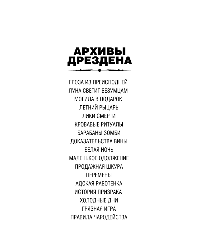 Его зовут Гарри Блэкстоун Копперфилд Дрезден. Можете колдовать с этим именем — за последствия он не отвечает. Когда дела принимают странный оборот, когда то, чему положено хорониться во мраке, выползает на свет, когда никто больше не может помочь вам, звоните... Кому? Ему, Гарри Дрездену. Имя его есть в «Желтых cтраницах»…
