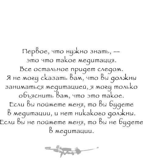 Когда я говорю: «медитируйте», я знаю, что с помощью медитации вы ничего не достигнете; но с ее помощью вы придете к той точке, где будет возможна не-медитация.