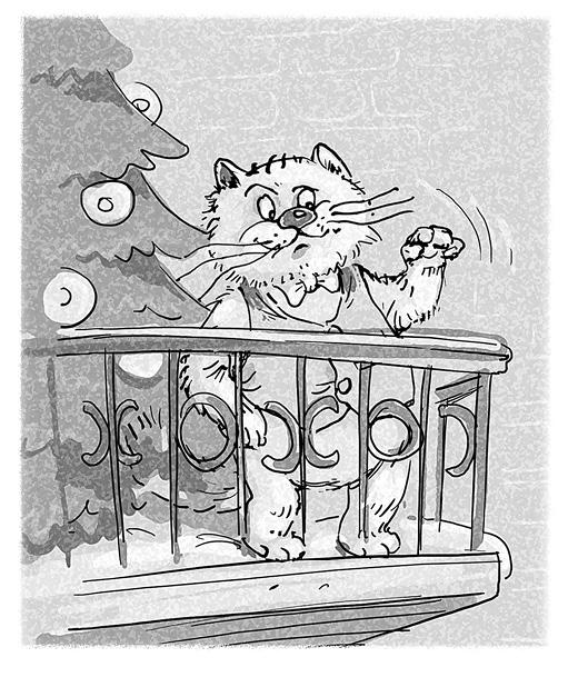 — Посмотри, что у кота Лео на балконе творится! Его Димка ёлку украшает. Хочет в конкурсе «Новогодний балкон» победить.