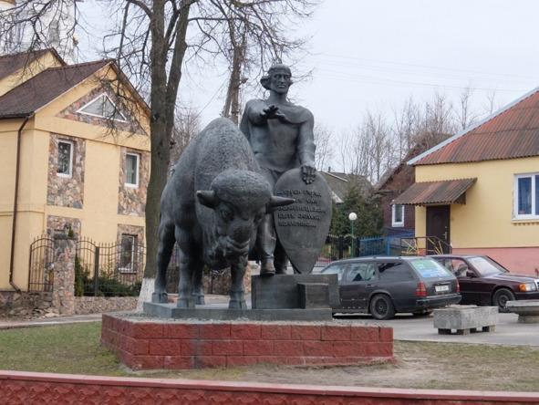 Каменец. «Памятник то ли основателю крепости князю Владимиру Васильковичу, то ли градостроителю Алексе. В половине источников сообщается, что это князь, в другой половине — что это Алекса. В пользу последнего говорит табличка, установленная рядом с памятником. Считается, что по указанию князя „градоруб“ Алекса выбрал место и построил на нём город, от которого до наших дней и сохранилась Каменецкая вежа. Сама крепость, окружавшая её, была деревянной». Источник: https://ts58.livejournal.com/34986.html