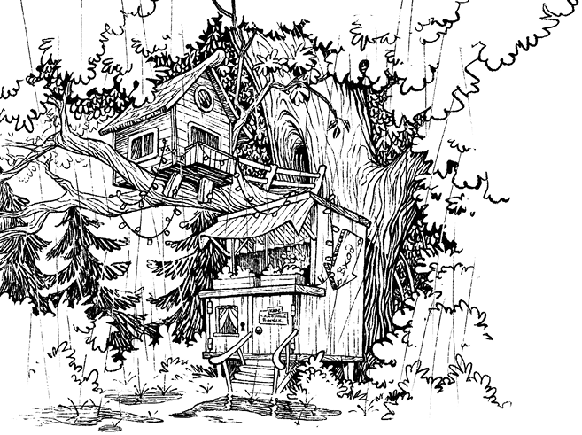 В домике на дереве жила белочка Ракета. Больше всего на свете она любила готовить! Пекла булочки, закатывала варенье в банки и сушила грибы и травы. Её балкон целый год украшали новогодние гирлянды: они ярко светились и заманивали гостей на чашечку облепихового чая.