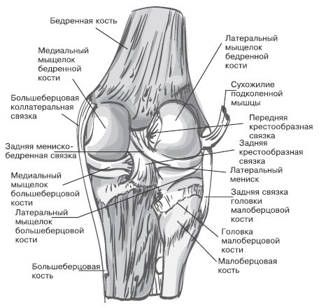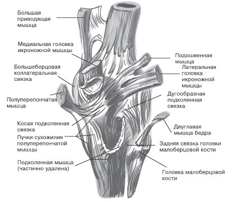 Правый коленный сустав, вид сзади (суставная капсула удалена)