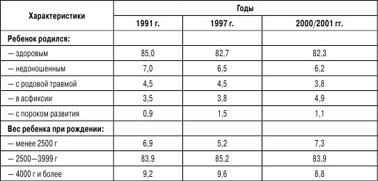 Таблица 1.1 Динамика некоторых характеристик здоровья детей при рождении (%)