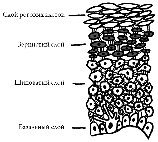 Эпидермис, четыре клеточных слоя
