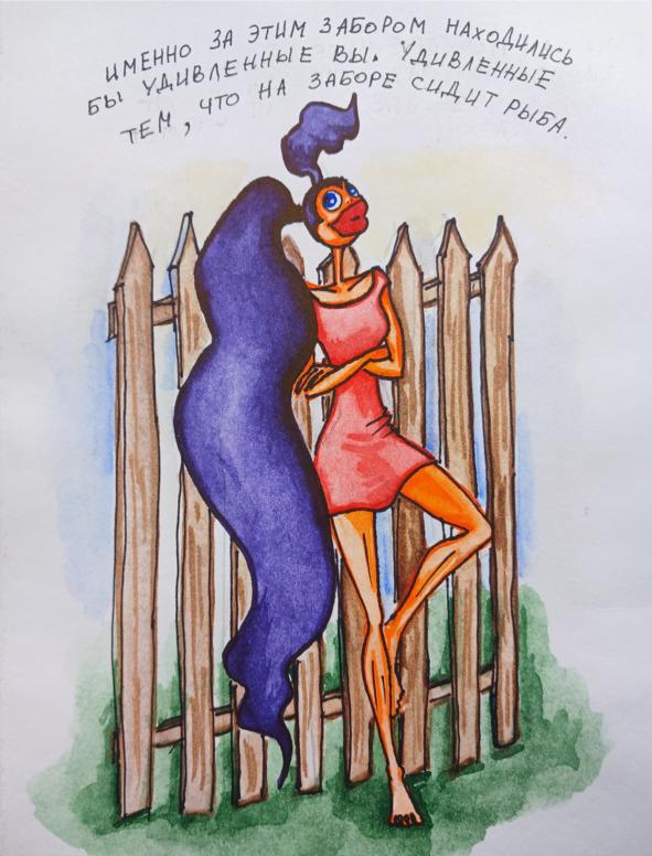Ну что это я всё, голова да рыба. На самом деле, там за забором скрывалось бы обыкновенное человеческое тело с длинными стройными ногами. Впрочем, вы можете и сами убедиться в том, что я описываю её верно, только лишь взглянув на неё.