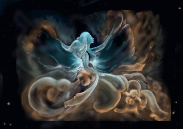 Мужчины, сидевшие у костра, пристально посмотрели на нас и сказали, что очень давно ждут нашего прихода. Моя спутница мгновенно обрела облик девочки у костра, которая тут же исчезла в пустоте. Нас проводили к повелительнице этого мира — Гекате.