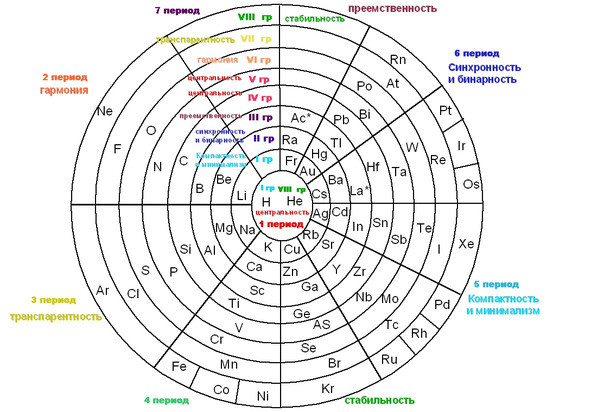 — предложил изображение таблицы Менделеева в новой графике — графике Кучина, которая дополняет химические свойства элементов свойствами философских категорий.