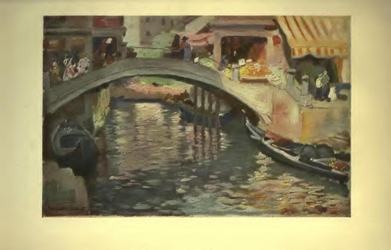My first rambles, moreover, had a peculiar charm which knowledge of locality has since taken away. They began commonly with some purpose or destination, and ended by losing me in the intricacies of the narrowest, crookedest, and most inconsequent little streets in the world, or left me cast-away upon the unfamiliar waters of some canal as far as possible from the point aimed at. Dark and secret little courts lay in wait for my blundering steps, and I was incessantly surprised and brought to surrender by paths that beguiled me up to dead walls, or the sudden brinks of canals. The wide and open squares before the innumerable churches of the city were equally victorious, and continually took me prisoner. But all places had something rare and worthy to be seen: if not loveliness of sculpture or architecture, at least interesting squalor and picturesque wretchedness: and I believe I had less delight in proper Objects of Interest than in the dirty neighborhoods that reeked with unwholesome winter damps below, and peered curiously out with frowzy heads and beautiful eyes from the high, heavy-shuttered casements above. Every court had its carven well to show me, in the noisy keeping of the water-carriers and the slatternly, statuesque gossips of the place. The remote and noisome canals were pathetic with empty old palaces peopled by herds of poor, that decorated the sculptured balconies with the tatters of epicene linen, and patched the lofty windows with obsolete hats.