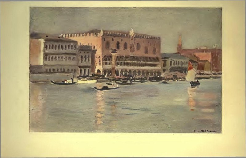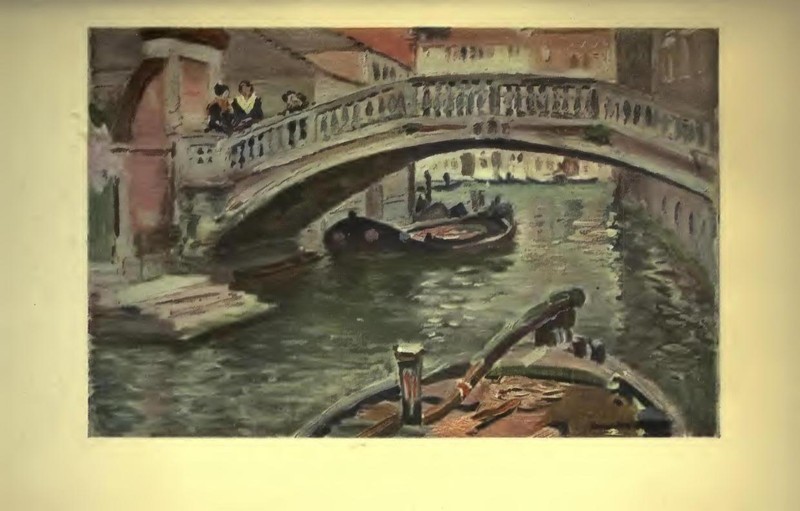 “The Venice of modern fiction and drama is a thing of yesterday, a mere efflorescence of decay, a stage-dream, which the first ray of daylight must dissipate into dust. No prisoner whose name is worth remembering, or whose sorrows deserved sympathy, ever crossed that Bridge of Sighs, which is the centre of the Byronic ideal of Venice; no great merchant of Venice ever saw that Rialto under which the traveler now pauses with breathless interest; the statue which Byron makes Faliero address at one of his great ancestors, was erected to a soldier of fortune a hundred and fifty years after Faliero’s death.”—Stories of Venice.]