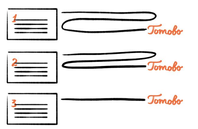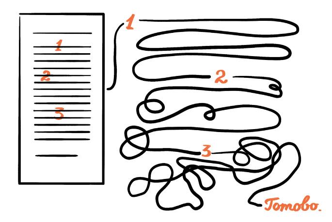 И, разумеется, написать три хорошо структурированные задачи намного сложнее, чем одно пространное письмо. Но в этом и секрет текста по полочкам: мы тратим свои силы, чтобы нашему читателю было легко.