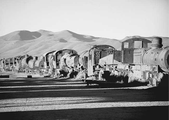 Рис. 4. Кладбище паровозов в солончаках Уюни. Боливия, экспедиция «Живая параллель», 2008 год. Фото автора