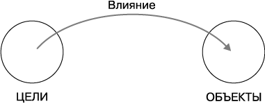 Управление — это целенаправленное изменение движения (поведения) каких-либо объектов. Концептуальным ядром этого определения является пара множеств, связанных отношением влияния: множества объектов, способных менять свои состояния, и множества целей — свободных переменных, изменение которых должно приводить к изменению состояний объектов (рис. 5).