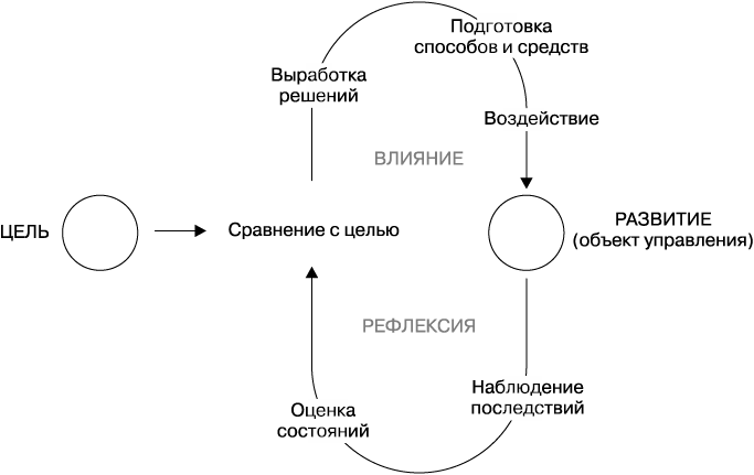 Наука об управлении — кибернетика — создала еще и такой соблазн для управленцев: соблазн управлять развитием с помощью так называемой отрицательной обратной связи. Отрицательная обратная связь работает так, чтобы, скажем, падение каких-то параметров управляемого объекта на выходе компенсировалось противоположным действием на его входе — действием, ведущим к подъему этих параметров (отрицание падения). И наоборот, любое превышение значений каких-то параметров на выходе управляемого объекта ею компенсируется с помощью понижения этих значений. Развитие же происходит совсем по-другому.