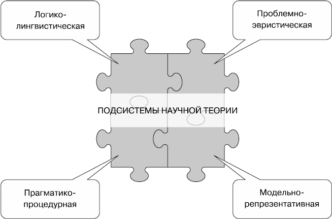 • Объяснить в развитии «тонкое». Согласно методологии науки, хорошая теория может дать объяснение своему предмету, если она оперирует несколькими обязательными блоками2. Это блок моделей (модельно-репрезентативная подсистема), блок операций над моделями с их оценками (прагматико-процедурная подсистема), блок средств выражения откровений (логико-лингвистическая) и блок ответов на вопросы теории и ее противоречий (проблемно-эвристическая) (рис. 2).