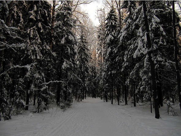 ШИРОКАЯ ДОРОЖЕНЬКА, \ БЕРЁЗКАМИ ОБСТАВЛЕНА, \ ОТКРЫЛАСЬ ТУТ КАК ТУТ. \ ПО БУДНЯМ МАЛОЛЮДНАЯ, \ ПЕЧАЛЬНАЯ И ТИХАЯ… Особенно красиво этот лесок смотрится зимой