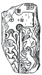 Особенно интересен остров Мэн: его искусство ясно показывает смешение скандинавской и кельтской культуры; кроме того, в его законодательстве и административном устройстве до наших дней сохранилось много скандинавских черт. Здесь поселенцы, судя по всему, были просто зажиточными крестьянами, которых привлекала «лучшая земля на Южных островах» (то есть на Гебридах, к которым причислялся и остров Мэн). На Мэне не возникло торгового центра. Викинги, очевидно, жили мирной жизнью среди кельтского населения, с которым вскоре стали заключать браки и которое обратило их в свою веру. Эта смешанная культура породила прекрасные памятники – каменные кресты Мэна. Форма крестов (каменная плита, на которой изображен крест с колесообразной вершиной) – типично шотландская, надписи – скандинавские и вырезаны рунами; из упомянутых там имен 44 – скандинавские, 22 – ирландские и одно пиктское. Отцом этого стиля был скандинав по имени Гаут. Возможно, самая прекрасная его работа – крест из Кирк-Майкл (рис. 7). Крест был изготовлен для кельтского патрона, но Гаут работал и на скандинавов. Орнамент на крестах выполнен в виде как кельтских, так и скандинавских типов переплетающихся лент, а также фигур людей и животных. Некоторые узоры воспроизводят сцены из скандинавской мифологии и героических легенд. Обращает на себя внимание (хотя это и не особенность одного только Мэна), что на христианских памятниках появляются языческие темы. Иногда художник, судя по всему, намеренно добивается контраста: в Кирк-Андриас Один, которого влечет к погибели апокалиптический волк, уравновешен христианской фигурой, которая триумфально попирает змею – символ зла (рис. 8, 9). Подобная скульптура рождалась и в норвежских колониях Камберленда и Уэстморленда: прежде всего это Госфортский крест, где противопоставлены сцены Распятия и Гибели богов.