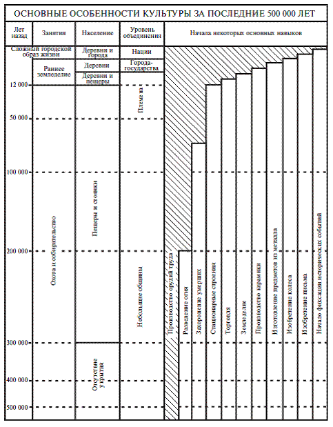 С момента, когда обезьяночеловек сделал свои первые орудия труда, до того времени, когда человек стал записывать свою историю, в его жизни произошло множество перемен. Получая новый опыт, он обогащал свое наследие, а накапливая культурные навыки, смог сформировать свой характер и сущность. Небольшие группы первобытных людей постепенно превратились в общины, объединившиеся позднее в племена. К моменту появления ранних городских поселений они превратились в отдельные группы кровных родственников.