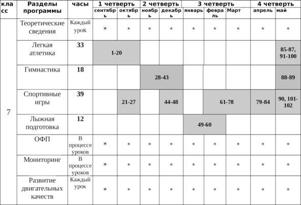 Примерный годовой план-график учебного процесса по физической культуре, 7 класс