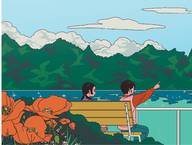 Доев мороженое, Сорён кинула маленький камень в пруд.