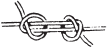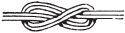 1) Концы двух колен лесы на вершок накладываются друг на друга и завязываются в двойную петлю, которая затягивается как можно крепче. Это рыбачий узел. 2) На конце одного колена делают простую петлю, в которую пропускают конец другого; этим последним обхватывают первый волосок и завязывают такую же петлю. Петли затягиваются, лески растягиваются в противоположные стороны, так что образовавшиеся из петель узлы сильно нажимают один на другой и этим затягиваются еще крепче (рис. 19). Если леска делается из т. н. буйволовых волосков или жилок, то употребляется первый способ (рис. 17 и 18), потому что в первом способе связывания нет такого резкого сгиба, как во втором.