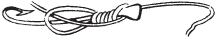 1) На стержне крючка с внутренней и с наружной стороны делают несколько надрезов посредством тонкого напилка; затем, взяв тонкую, но крепкую шелковинку, натертую варом, ее обвивают вокруг стержня редкой спиралью по направлению от сгиба к концу стержня. Теперь на стержень с внутренней же стороны накладывается конец поводка, предварительно размягченный в воде и расплющенный между зубами (на протяжении 1/4 дюйма), и обматывается вместе со стержнем, по возможности туже. Обороты шелковины должны ложиться как можно плотнее один к другому; когда длина завязки покажется достаточная, делают 2–3 петли и закрепляют конец шелковины посредством узла. Петли делаются так: конец шелковины пропускается под один оборот и затягивается как можно крепче. Таким образом оборот шелковины прихватывает ее к стержню. Скрытый узел делается следующим образом: на стержень накладывается сложенная вдвое нитка концами к концу стержня. Шелковинка обертывается не очень туго раза три вокруг стержня, прихватывая и сложенную вдвое нитку; затем конец ее (т. е. шелковины) пропускается в петлю, образуемую ниткою, и продергивается при ее помощи под последние обороты шелковины. Многие рыболовы (даже большинство их) пользуются каким-либо одним из этих способов для закрепления конца шелковины, но лучше пользоваться обоими вместе, как сказано выше.