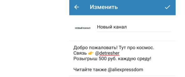 Название и описание канала, ограничено 255 символами, включая пробелы и знаки препинания.